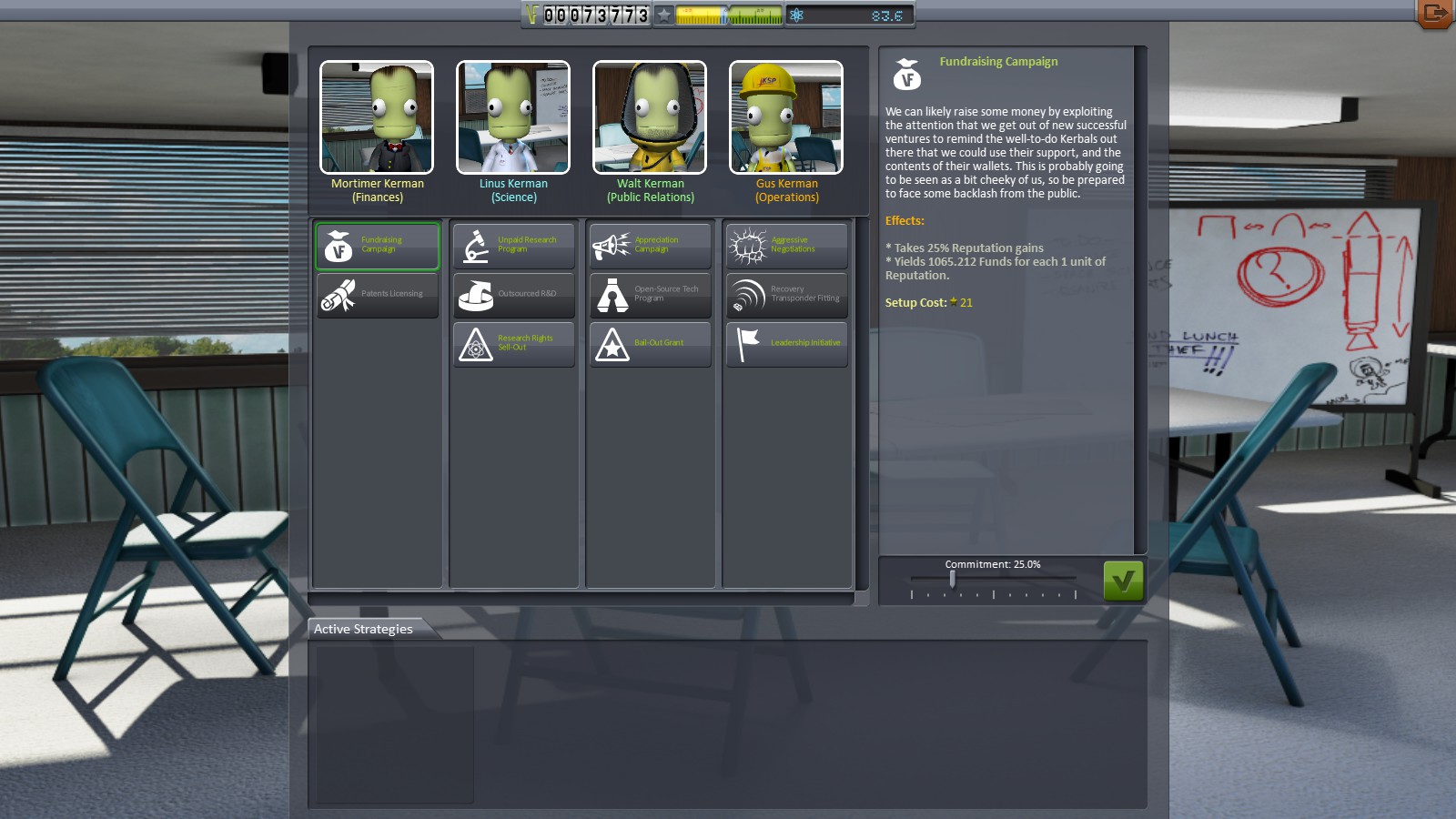 We've got two missions, each to aerial survey a nearby area. I call for confirmation that these contracts are, in fact, meant to be sent to the space agency. Where I'm informed that yes, of course we were supposed to get them. Who are an aeronautics agency, after all, and who else would? No one else is crazy enough to go above ground for any length of time. Having lived up here for so long, I had forgotten just how crazy I was compared to a normal Kerbal. This would explain so much.